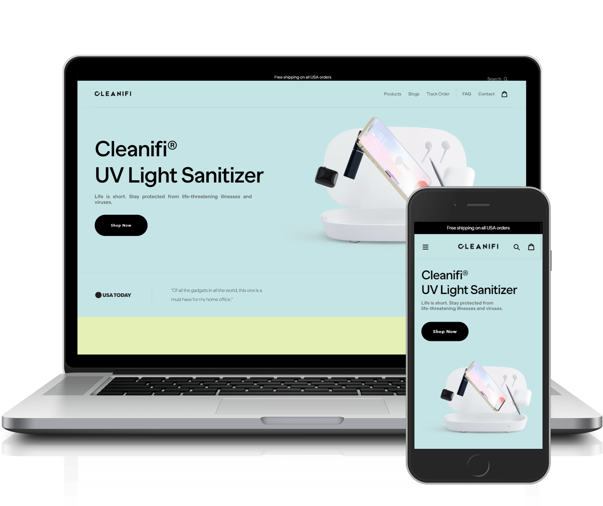 Shopify website built from a design made from Adobe XD provided by the client.