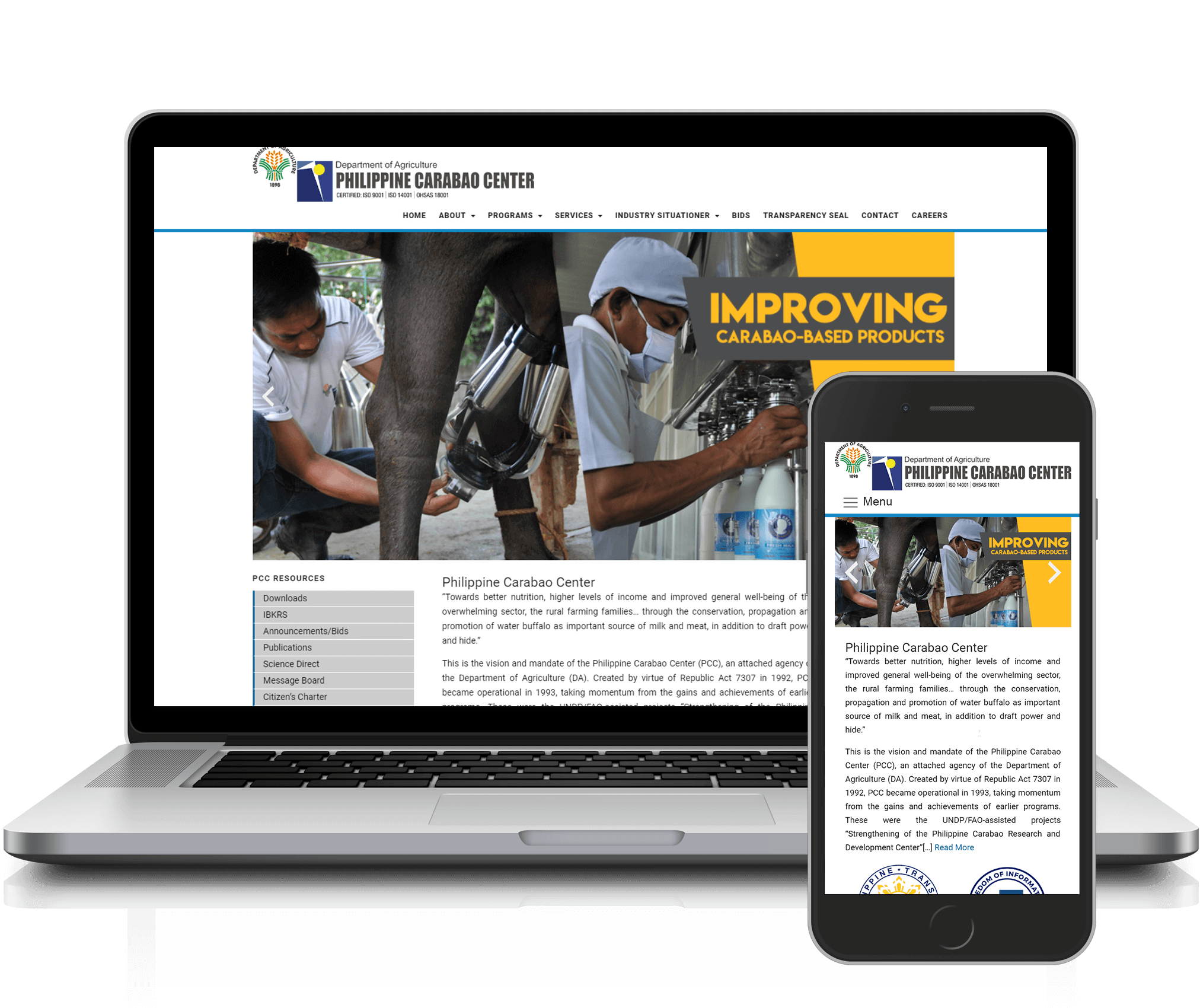 Official website of Philippine Carabao Center. Migrated old website into Wordpress platform.